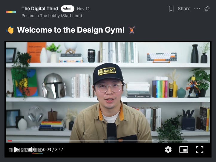 The Design Gym by Josh Loh is a new design community with a mission that really resonates with me: “Help designers turn inspiration to action through creative play.” It is “an online training platform where designers build creative capital through structured reps, real-time challenges, and a community that pushes them forward”. I joined as a founding member, you can use my “friend link” to get a 1-month Free Trial (it is not an affiliate link, I can basically gift 1 month, and I just really believe in Josh’s vision).
