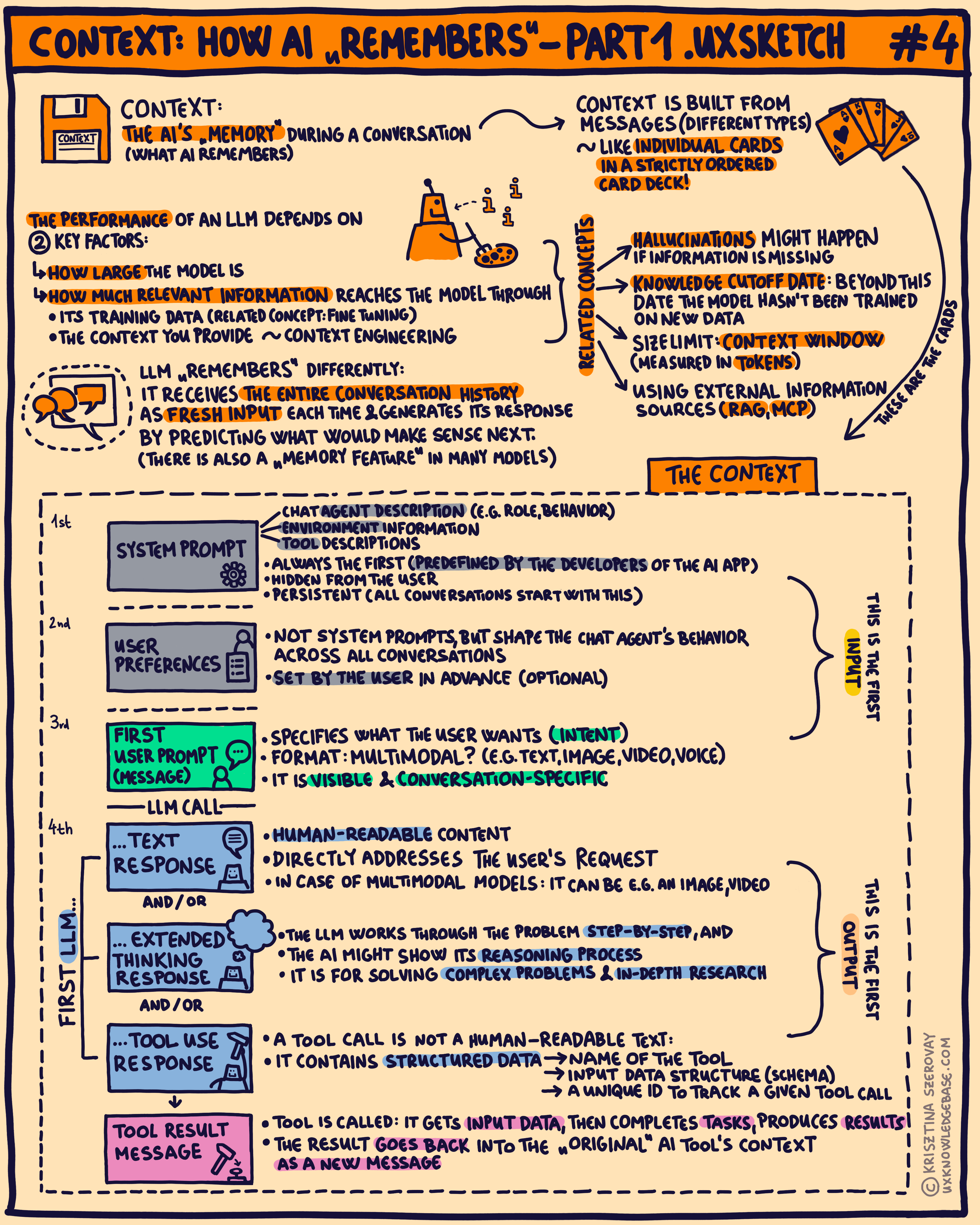 Context is AI’s “memory” during a conversation, and it is built from messages that are like individual cards in a strictly ordered card deck.