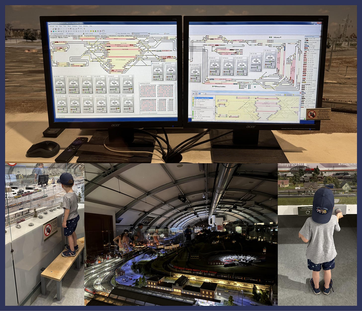 there was an interactive model railway that visitors could control by using a knob — it was interesting to observe how intuitive it was for my 3-year old, the affordance (knob for turning) really worked (bottom-right corner)