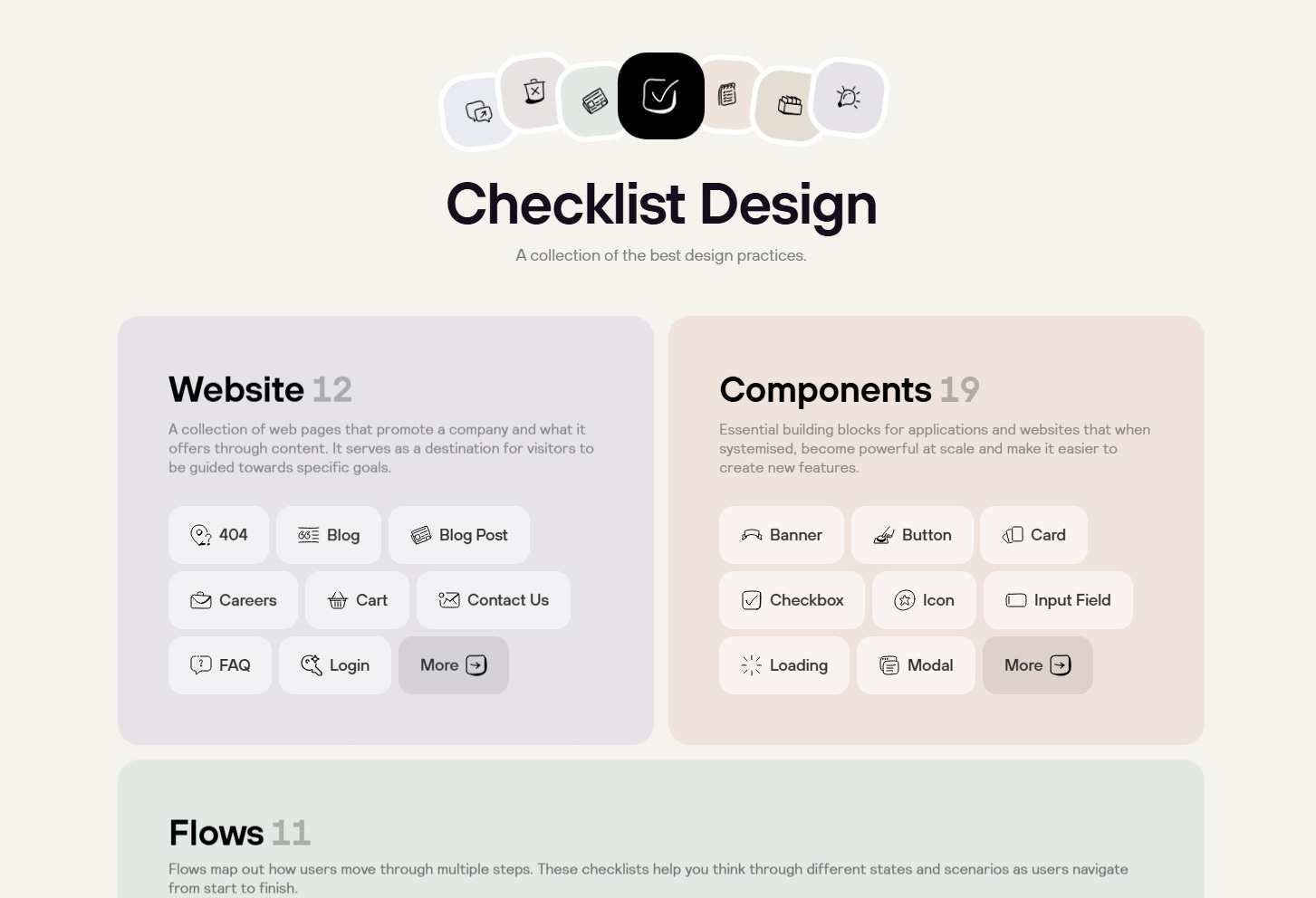 Checklist Design, a curated list of checklists ranging from website pages, to UI components, all the way to branding assets has just got an awesome new look.